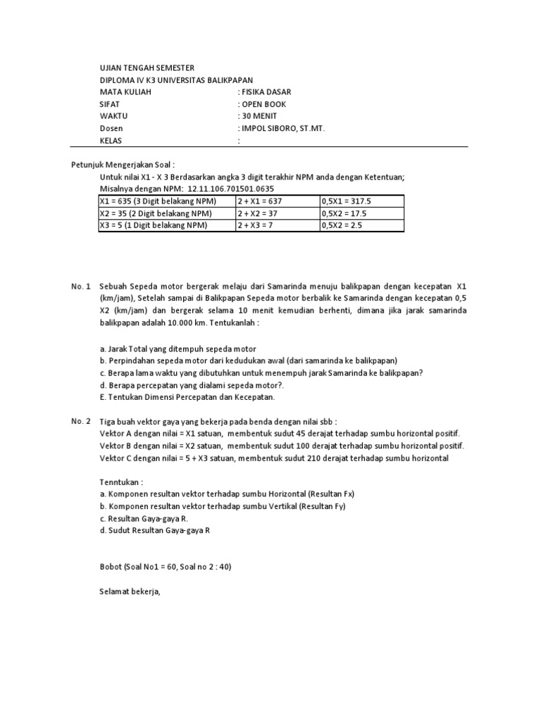 Fisika merupakan cabang ilmu yang peduli dengan sifat dan sifat materi dan energi. Hitunglah jumlah dari 1,040 dan 0,2134! 7 komponen sebuah vektor vektor a dengan komponen2 vektor ax dan ay yang saling. Posted in rumus fisikatagged contoh contoh soal usaha. Subjek fisika, dibedakan dari kimia dan biologi. Halliday, d., et al (2008). Catatan teori fisika dasar dengan kumpulan contoh soal fisika dan pembahasanya. Semua bisa diusahakan asal ada kehendak. Sebuah sepeda motor bergerak dengan laju 90 km/jam mendekati sebuah mobil yang bergerak pada arah yang sama dengan laju 80. Mirza satriawan june 18, 2012. Pembahasan soal uas fisika dasar i. Simpansimpan soal dan pembahasan fisika dasar untuk nanti. Getaran dan latihan soal uas fisika panas dan gelombang 1.